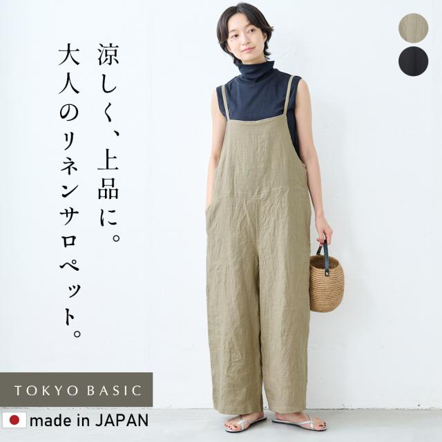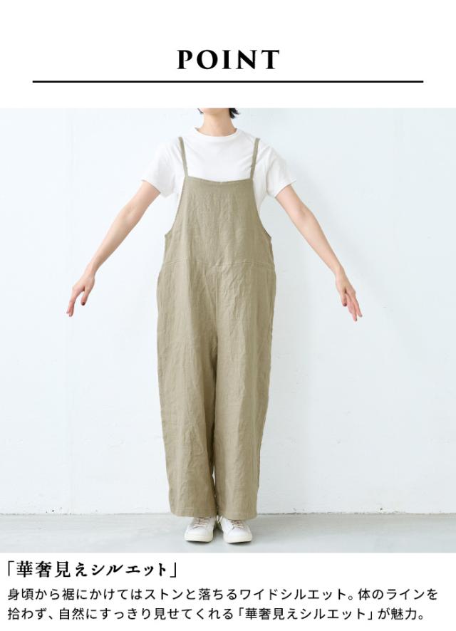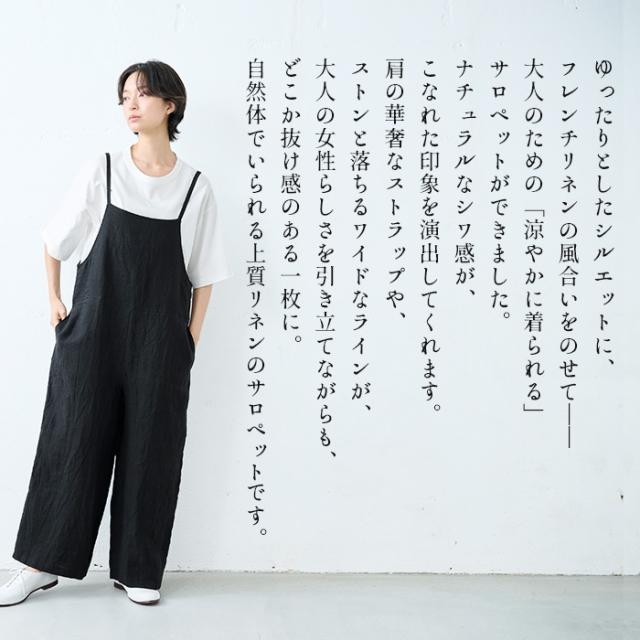 40番手フレンチリネン100% サロペット 日本製 / サロペットレディース サロペットパンツ リネン 夏 涼しい 40代 50代 60代 麻 リネン リネンサロペット おしゃれ 薄手 オールインワン ワイドパンツ オーバーオール きれいめ 体型カバー 着痩せ 大人 春夏