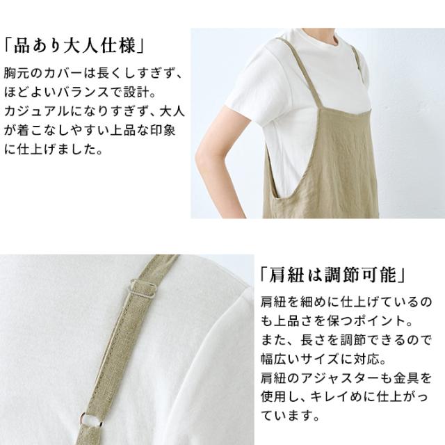 特徴 涼しく、上品に。大人のリネンサロペット。フレンチリネンのラフ感で、大人のこなれサロペット。ゆったりとしたシルエットに、フレンチリネンの風合いをのせて——大人のための「涼やかに着られる」サロペットができました。ナチュラルなシワ感が、こなれた印象を演出してくれます。肩の華奢なストラップや、ストンと落ちるワイドなラインが、大人の女性らしさを引き立てながらも、どこか抜け感のある一枚に。自然体でいられる上質リネンのサロペットです。