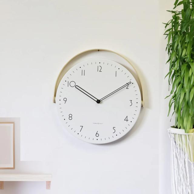 ホワイトの文字盤にブラックの数字と針。モダンで洗練された雰囲気に、ベルトのウッドが暖かみを加えます。