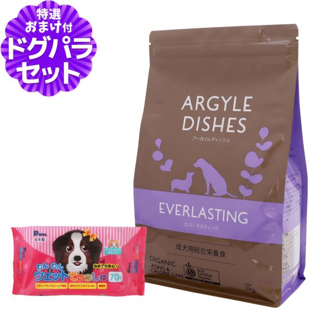 【沖縄以外送料無料】アーガイルディッシュ ドッグフード エバーラスティングシニア 2kg(通常2-5ヶ月の賞味期限で出荷) +わんわんウエットてぃっしゅ 1個