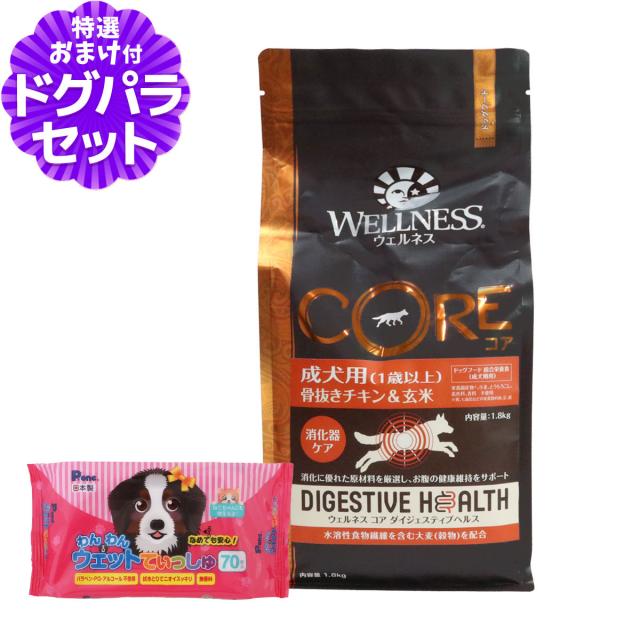 【沖縄以外送料無料】ウェルネス コア ダイジェスティブヘルス 成犬用 (1歳以上)骨抜きチキン&玄米 1.8kg+わんわんウエットてぃっしゅ 1個