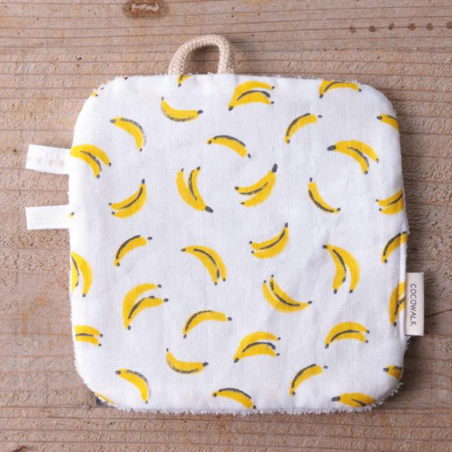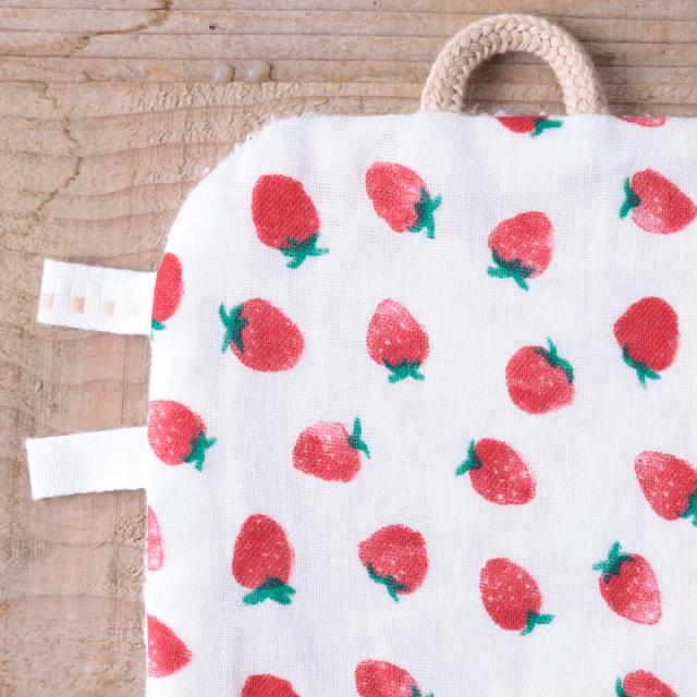 赤ちゃんの五感を刺激するのにぴったりのおもちゃハンカチです。中にフィルムが入っており、触るとカシャカシャ音がします。付属のシリコンストラップを付ければ、お出掛け時の持ち運びにも便利です。