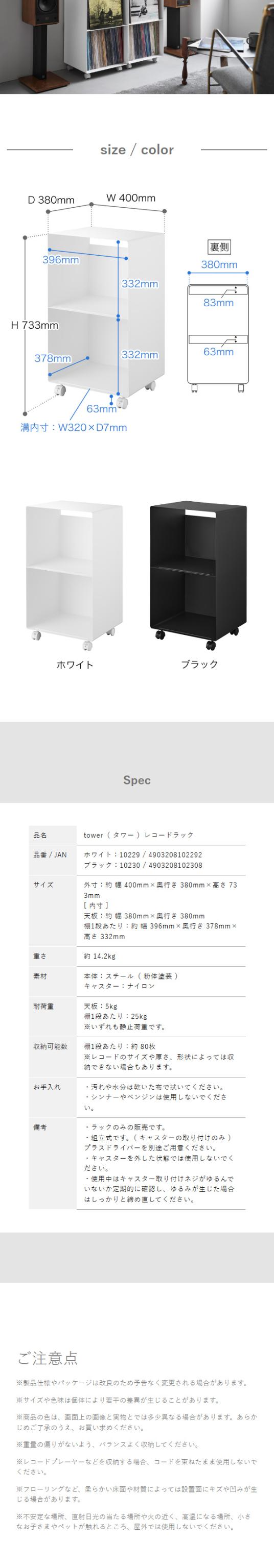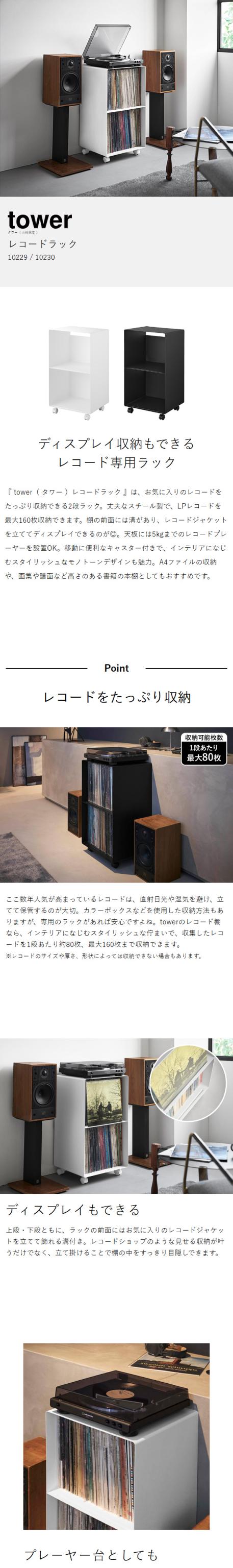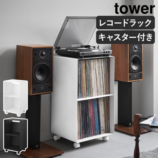 [ レコードラック タワー ]山崎実業 tower レコード棚 2段 キャスター レコード レコードプレイヤー 収納 棚 収納棚 ディスプレイ 画集 譜面 書籍 本棚 LPレコード リビング収納 北欧 おしゃれ yamazaki 公式 モノトーン ブラック ホワイト 10229 10230