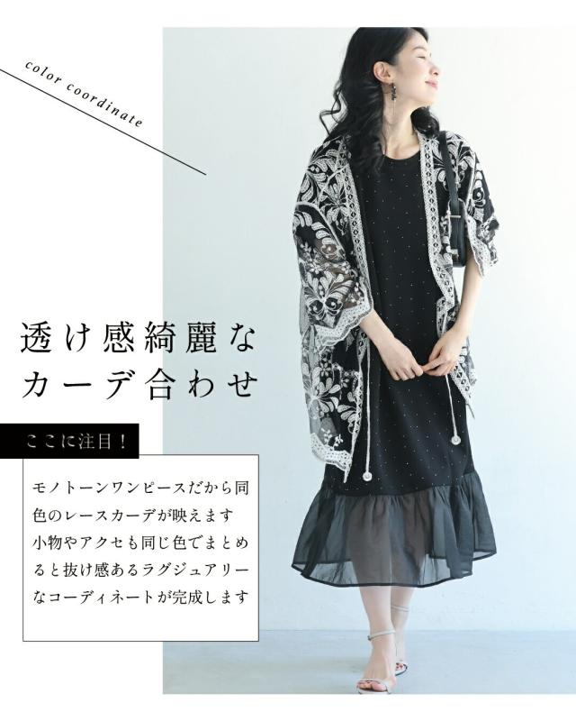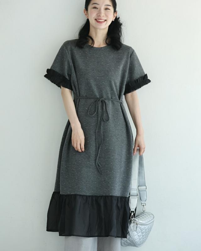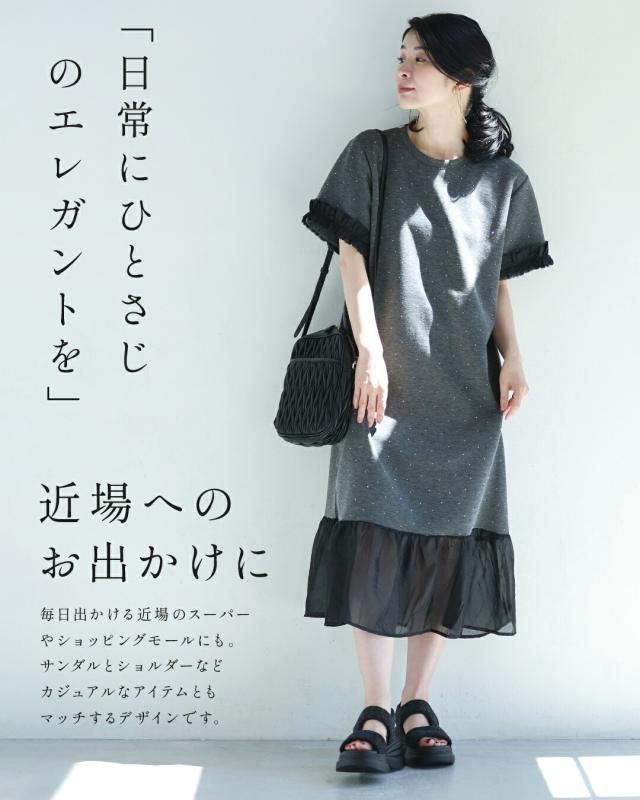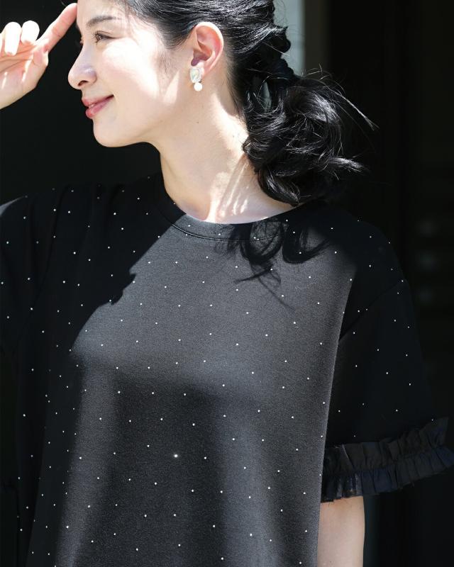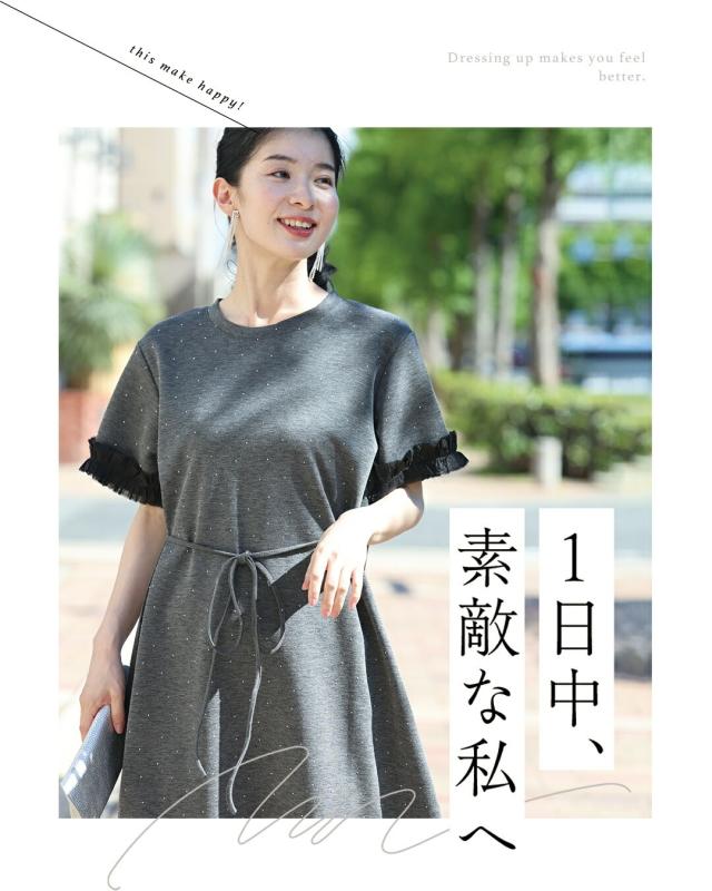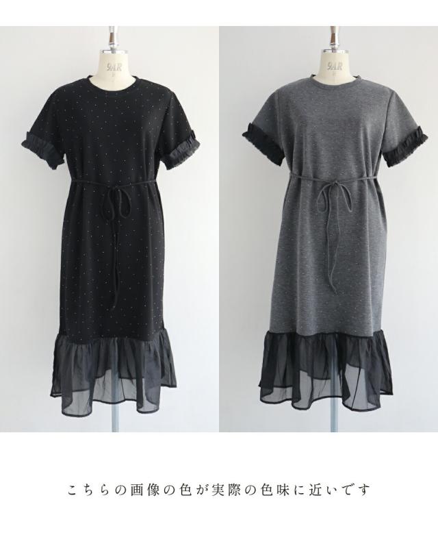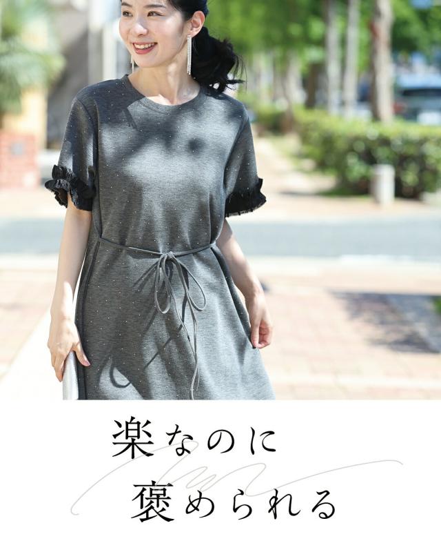 w61505ps 新作 新着 再入荷 CAWAII FRENCHPAVE フレンチパヴェ エレガント ベーシック カジュアル 可愛い かわいい カワイイ おしゃれ オシャレ お洒落 個性 個性的 定番 ベーシック 大人かわいい 大人可愛い 上品 女性らしい デザイン スタンダード ナチュラル きれいめ キレイめ シンプル フェミニン レディース レディースファッション 大人 ママ ミセス 30代 40代 50代 60代 ワンピース ひざ丈 半袖 S M L XL フリーサイズ フリー 小さめ 小さいサイズ 低身長 痩せ ほっそり 小柄 細身 標準サイズ 大きめシルエット 大きい 大きめ ビッグシルエット ゆったり F サイズ自由 薄手 涼感性 涼しい ずずしい 春 夏 春服 春物 夏服 夏物 大人女子 伸縮 ブラック 黒 グレー 灰 日常使い おでかけ 旅行 女子会 パーティー お呼ばれ 食事会 デート シアー ラインストーン 装飾 ティアード