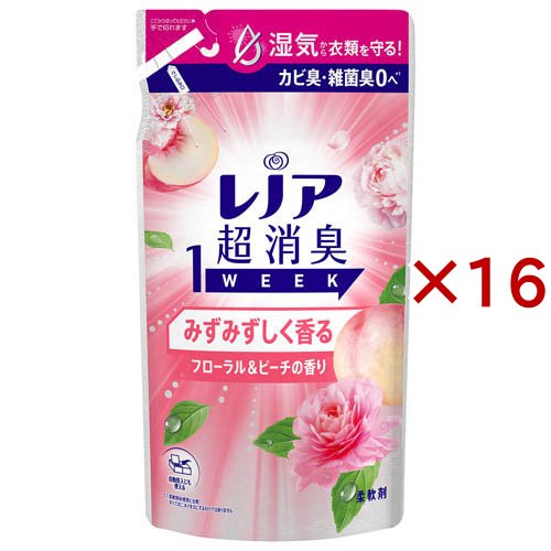 レノア 超消臭1WEEK 柔軟剤 みずみずしく香るフローラル&ピーチの香り 詰め替え(340mL×16セット)[柔軟剤(液体)]