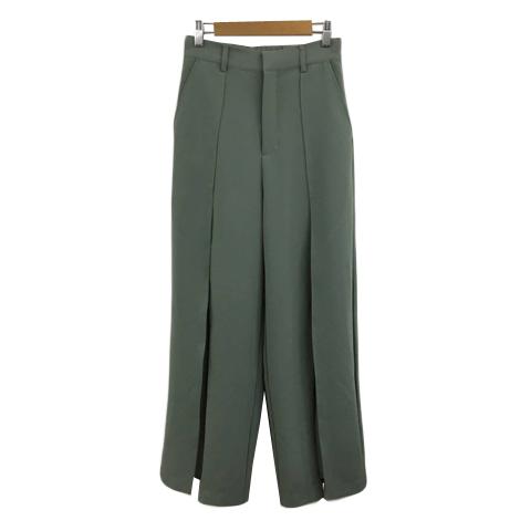 【中古】ジーナシス パンツ ワイド ロング スリット シアー 透け感 ウエストゴム ハイウエスト F 緑 グリーン