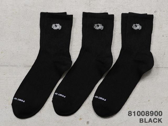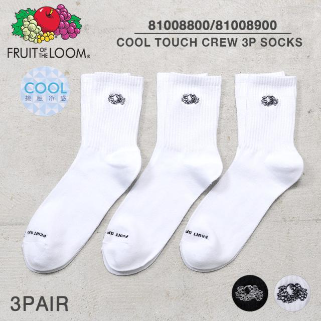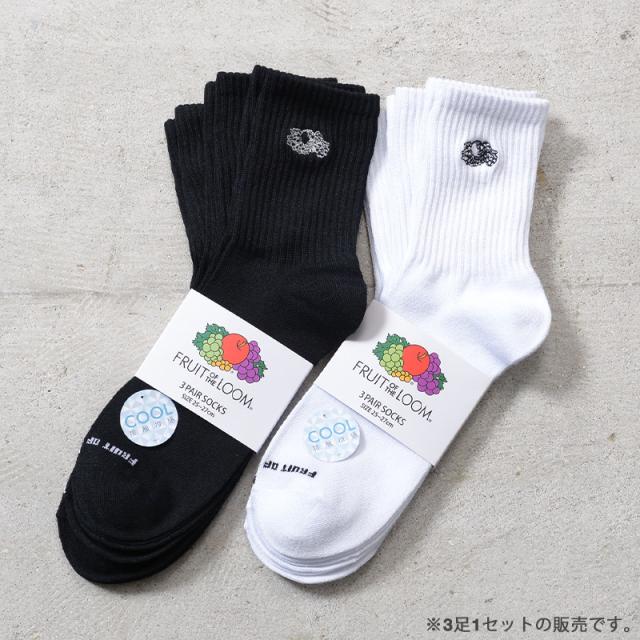 FRUIT OF THE LOOM フルーツオブザルーム Q.FTL 接触冷感 刺繍 クルーソックス 3足セット【T】|メンズ 靴下 アメカジ ミリタリー ファッション レーヨン シンプル ベーシック カジュアル プレゼント ギフト