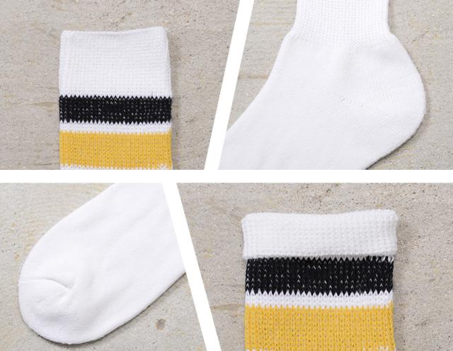 FRUIT OF THE LOOM(フルーツオブザルーム)より、ルーズな履き心地が特徴のDADソックスが登場しました。生地はコットンを採用しており、肌触りの良いソフトな素材感。DADソックスならではのボリューム感のあるルーズな履き心地で遊び感を演出しています。丈感は、シーズン通して使えるクルー丈。シンプルながら洗練されたベーシックなデザインはスニーカーとの相性ピッタリ。足元のボリューム感と締めつけ感のないリブ部分が存在感抜群です。 またリブ部分カラーラインも良いアクセントになってます。幅広いコーディネートでお使い頂けるカラーにシンプルなデザインで通年活躍してくれます。友人やご家族などへのギフトにもオススメです。
