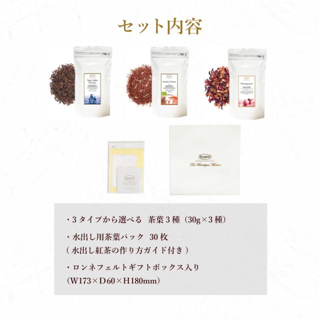 ロンネフェルト 人気茶葉 水出し紅茶3種ギフト アイスティー 熱中症対策 夏バテ防止 紅茶 ギフト プレゼント 内祝 御祝 のし 土産 おすすめ おしゃれ 御礼 誕生日 高級 夏ギフト 贈り物 アイスティー ルイボス お返し ブランド かわいい 冷たい紅茶