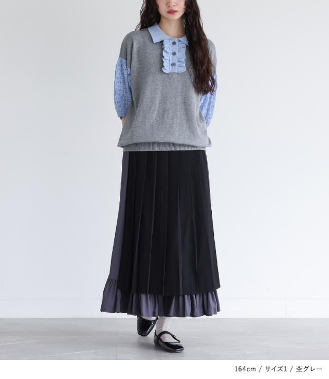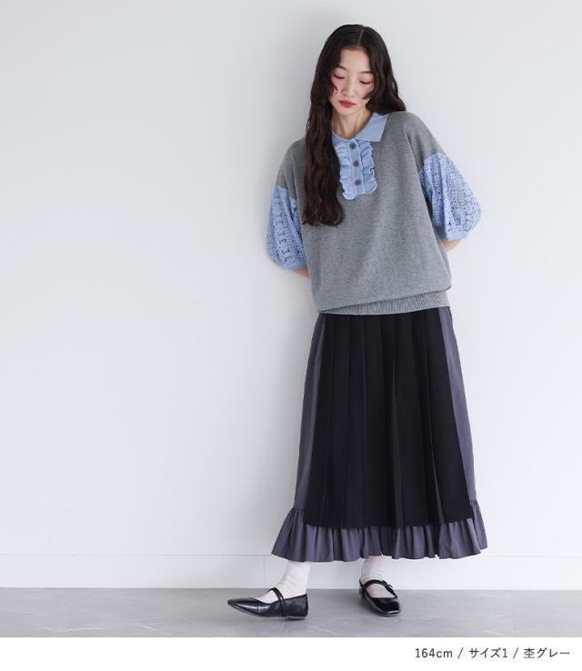 ニット 半袖 サマーニット レディース トップス ポロニット フリル レース ぽわん袖 襟付き ハイゲージ 春 夏 秋 【TP】 セーター ポロシャツニット プルオーバー 五分袖 ミディ丈 ミドル丈 チュニック丈 配色 無地 綿100% コットン100% 綿混 コットン混 異素材 シースルー シアー 透け感 レイヤード 重ね着 おうちで洗える カジュアル シンプル ナチュラル キレカジ フェミニン ガーリー 楽ちん 二の腕カバー Sサイズ Mサイズ Lサイズ LLサイズ 3Lサイズ XLサイズ ぽっちゃり 体型カバー 大きいサイズ プラスサイズ 10代 20代 30代 40代 50代 60代 低身長 高身長 女子会 オフィス 通勤 通学 お買い物 お出掛け 旅行 リゾート レジャー おしゃれ お洒落 トレンド 流行 somari imagination ソマリイマジネーション 可愛い系 大人女子 大人可愛い お洒落可愛い 大人カジュアル レトロ クラシカル 上品 きれいめ osharewalker オシャレウォーカー おしゃれうぉーかー グレー 灰色 杢グレー ブラック 黒 バイカラー[ID]12to089