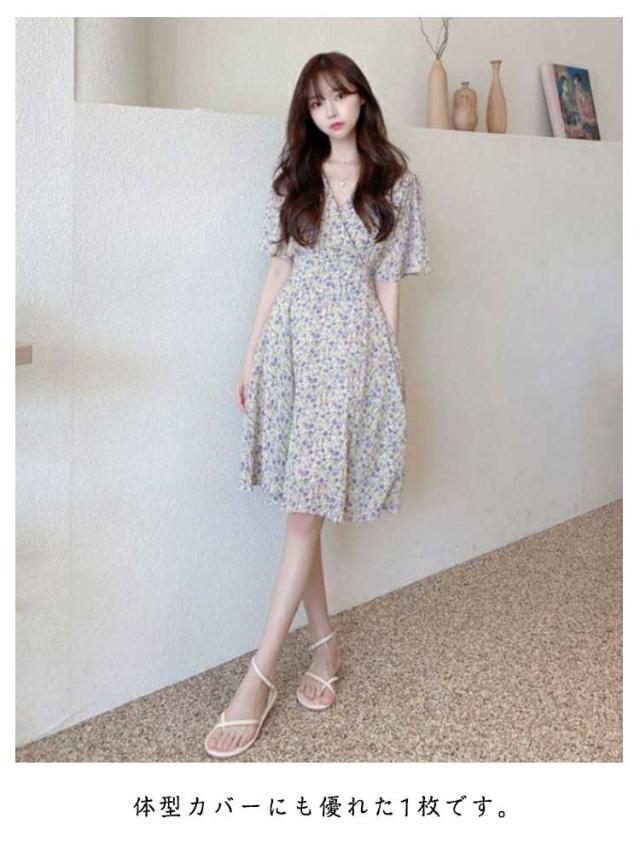 レディース シフォン ロング きれいめ ロングワンピース 二の腕カバー 着痩せ 半袖 ワンピース 体型カバー シフォンワンピース 花柄 ロングワンピ 着痩せ 大きいサイズ 小花柄 マタ二ティ Aライン 春 夏 ワンピース 涼しい シフォン ワンピース