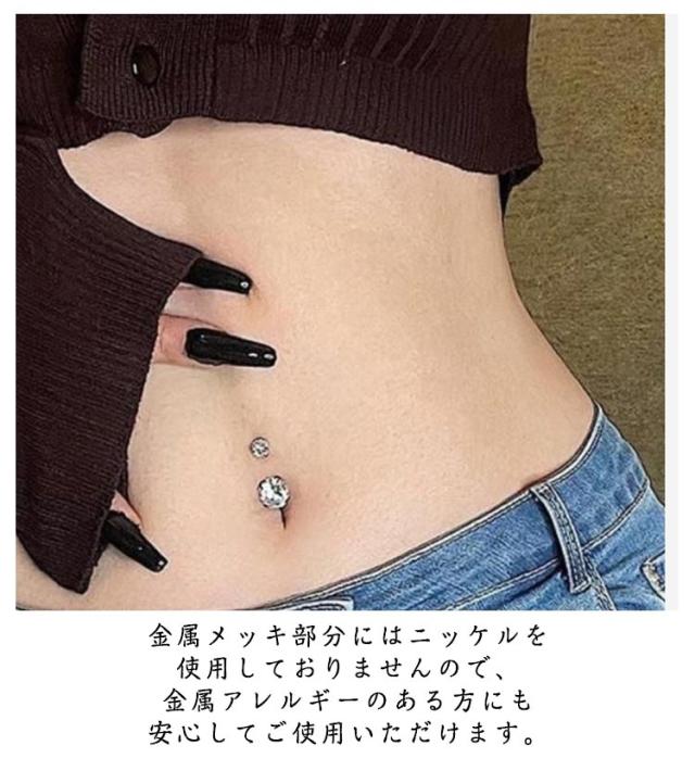 | シンプルで使いやすい定番人気のヘソピアス 貼るだけ シンプルでありながら、ピュアなクリスタルの豪華な輝きがオシャレです 金属メッキ部分にはニッケルを使用しておりませんので、金属アレルギーのある方にも安心してご使用いただけます。 | |