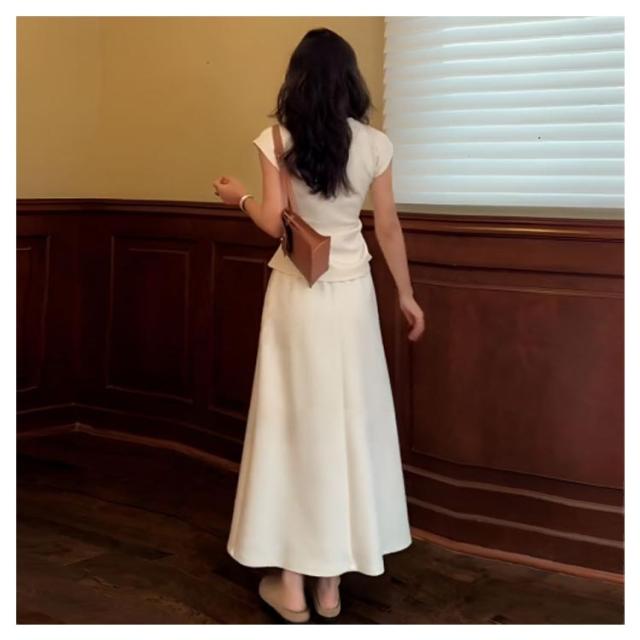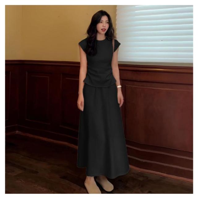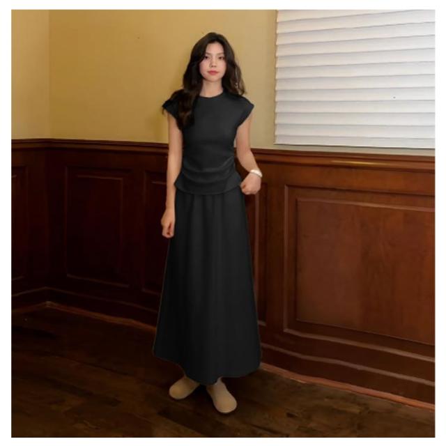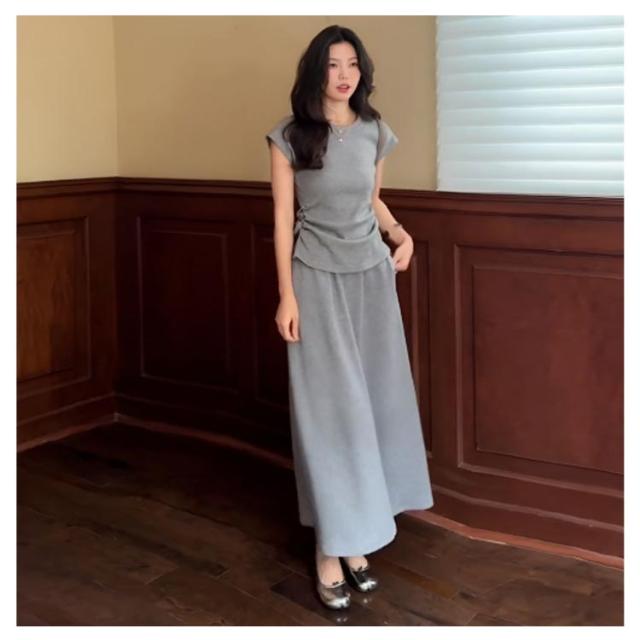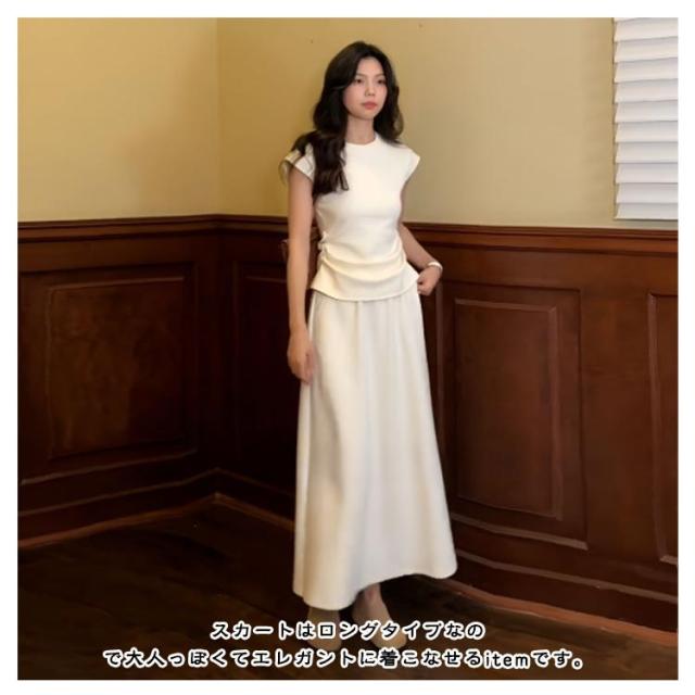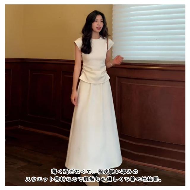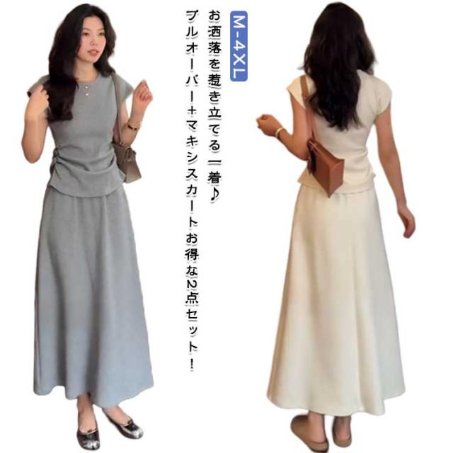 Tシャツ セットアップ カットソー スカート 夏 フレア 2点セット 通勤 レディース マキシスカート マキシ丈 ルームウェア ロング tシャツ きれいめ フレンチ袖 無地 シンプル ロングスカート セットアップ 体型カバー 着痩せ 低身長 お洒落 OL かわいい オフィス