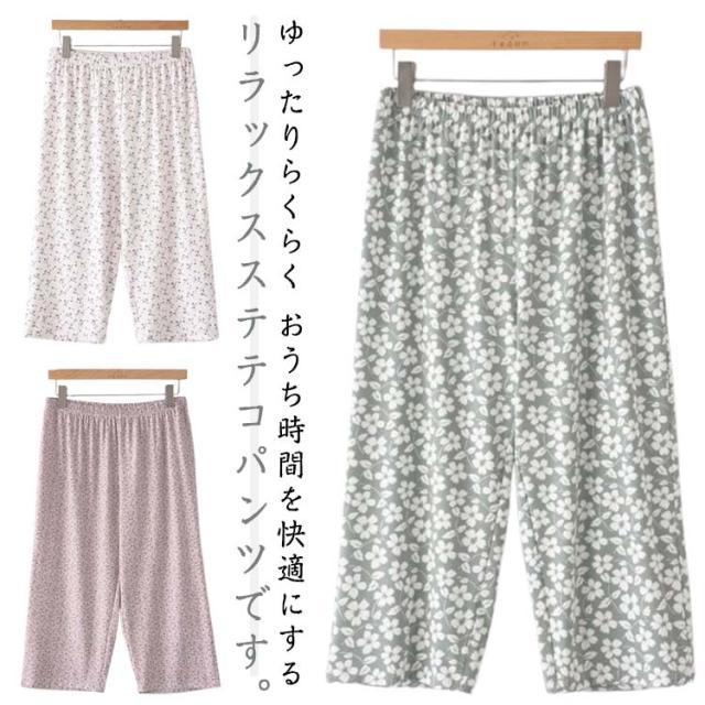 ステテコ ルームパンツ パンツ ステテコパンツ 柄 7分丈 リラテコ ステテコ ひざ下 レディース 総柄 リラックスパンツ かわいい 8分丈 ゆったり 薄手 ハイウエスト ボトムス 部屋着 おしゃれ 夏 花柄 婦人 サラサラ パジャマ 大きいサイズ 母親