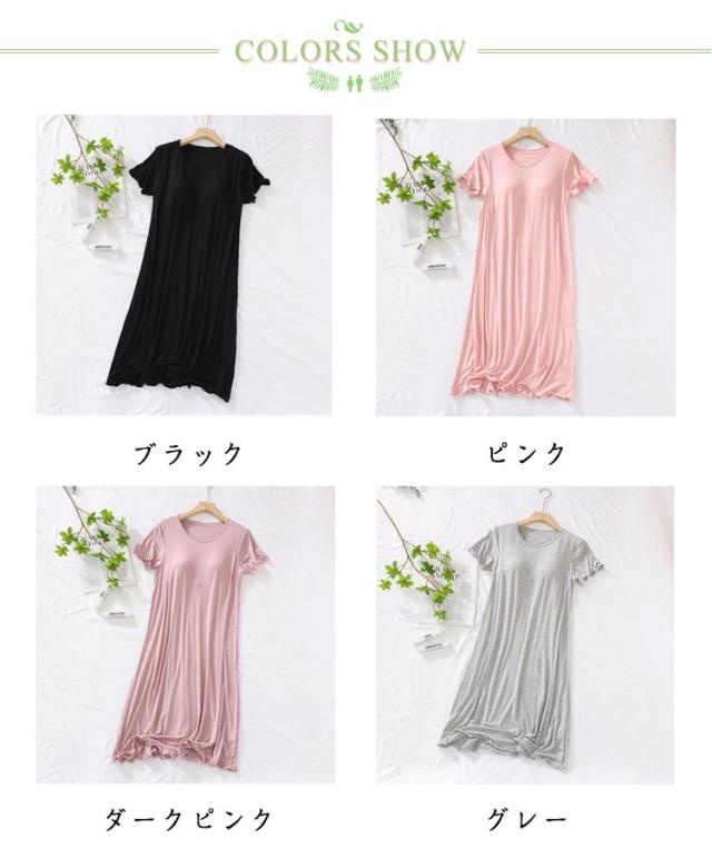 カップ付き ワンピース マキシワンピース パジャマ パジャマ フリル カップ付き カップ付き ワンピース ロングTシャツ モーダル ロング丈 無地 夏 ルームウェア 半袖 モダール素材で快適 可愛い かわいい ランジェリー 大きいサイズ 春 夏 薄手 無地 シンプル