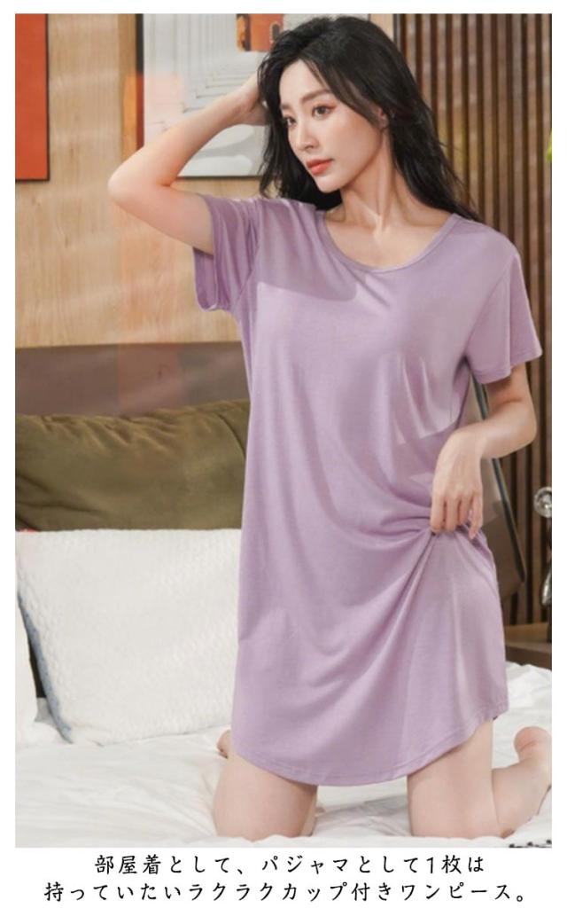 カップ付き ルームウェア カップ付き 夏 トラベルパジャマ レディース 半袖 パジャマ モダール ワンピース 寝巻き 薄手 パッツ付き かわいい 透けない ミドル丈ワンピース バックレス ワンピ 春夏用 tシャツ tシャツワンピース 春 旅行用