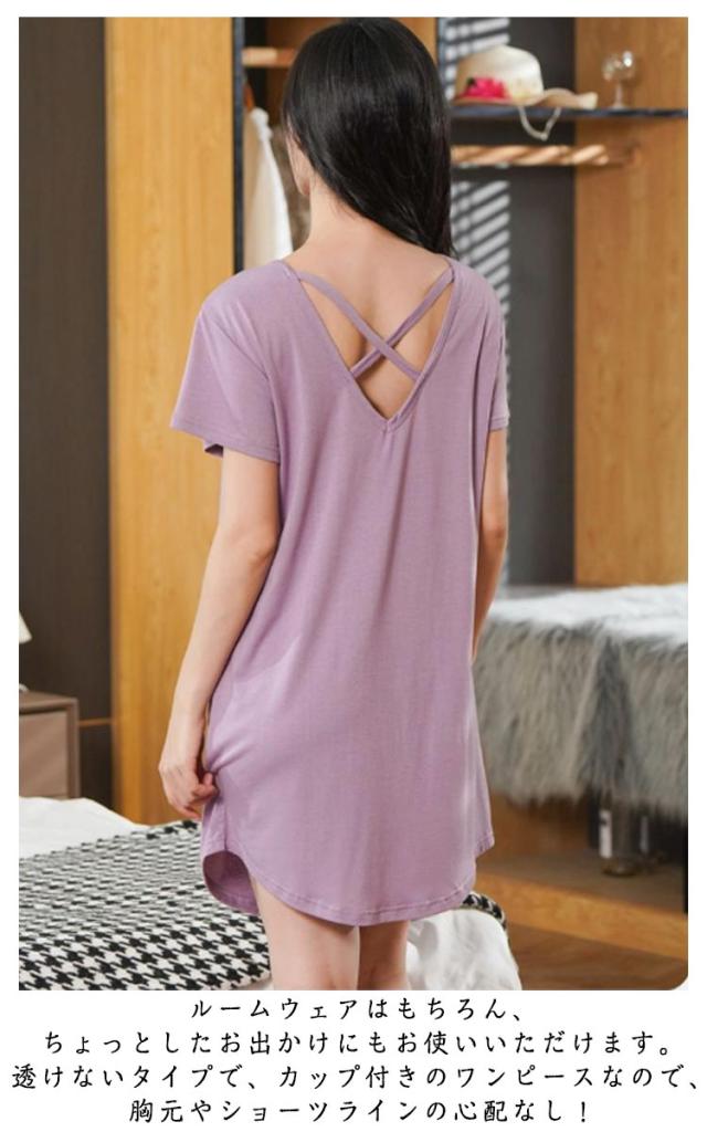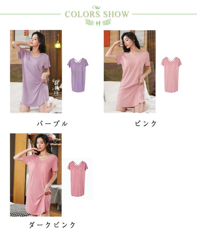 かわいい トラベルパジャマ パジャマ 春夏用 寝巻き ミドル丈ワンピース ルームウェア 部屋着 パッツ付き レディース カップ付き 薄手 モダール 半袖 透けない ワンピース バックレス ワンピ カップ付き tシャツ tシャツワンピース 春 旅行用