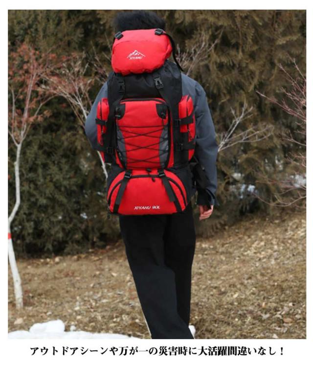 防災 90L 野球 バックパック アウトドア 登山 災害 サッカー 旅行 防水 バックパック キャンプ 3泊 避難準備 避難所 備蓄 防寒 海外
