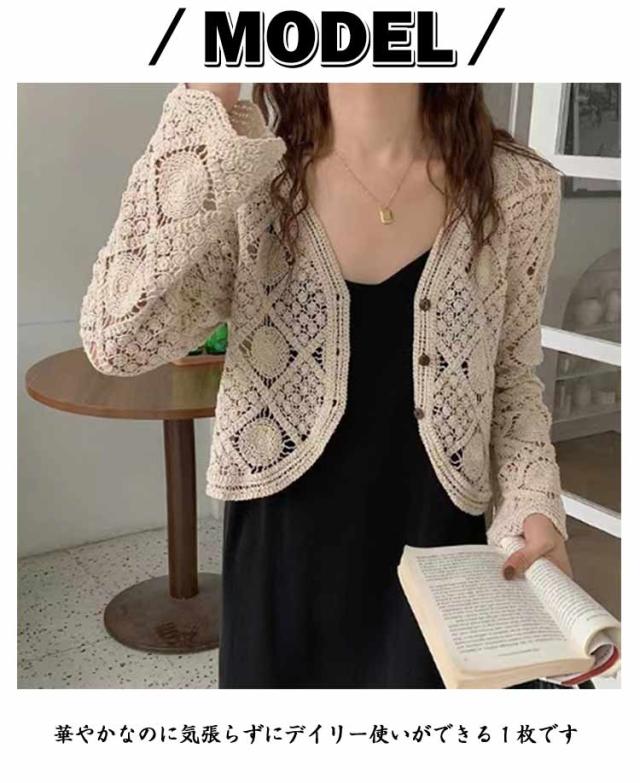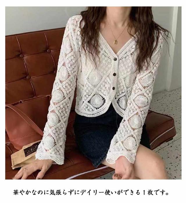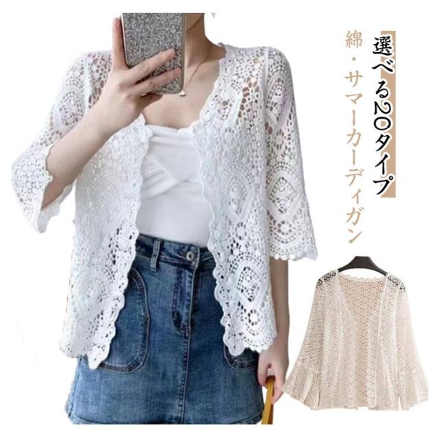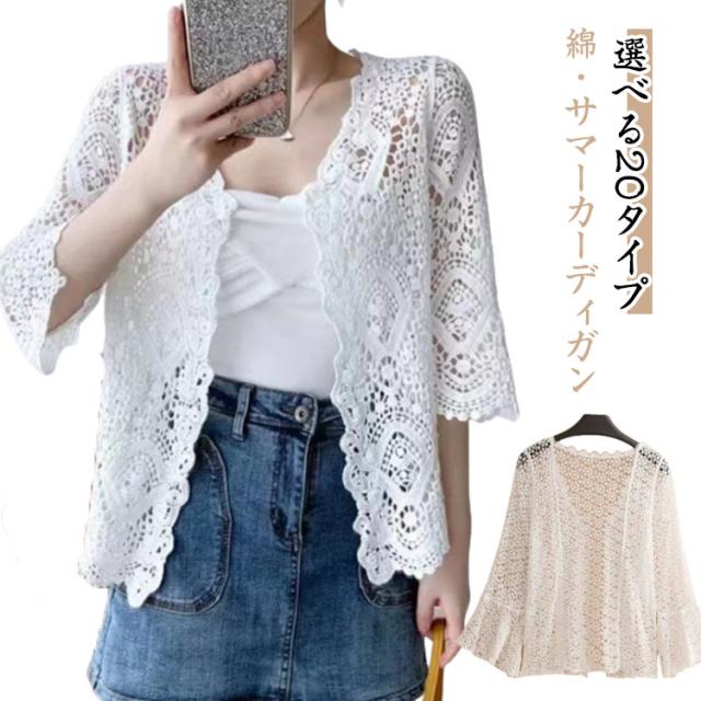 サマーカーディガン レース トップス サマーカーディガン コットン 冷房対策 透かし編み レディース レースカーディガン トップス ショート丈 シースルー オシャレ 春 透かし 秋 薄手 シンプル 羽織り オフィス カジュアル