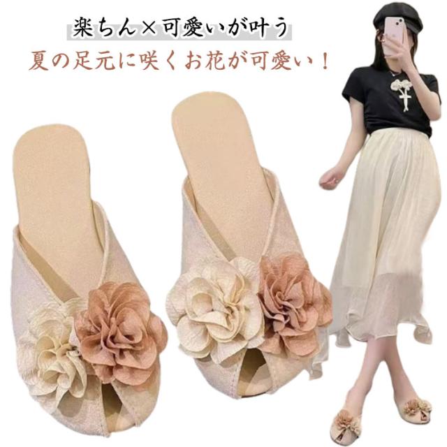 軽い 送料無料 レディース ペタンコ ローヒール サンダル すべりにくい お花 歩きやすい ミュール フラワー 痛くない 送料無料 スリッパ きれいめ おしゃれ ビーチサンダル 楽ちん つっかけ 海 痛くない 可愛い 夏
