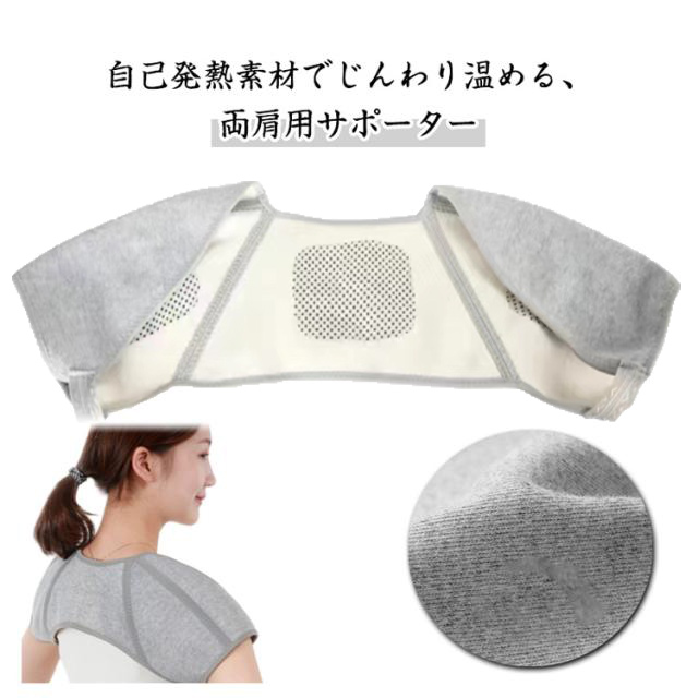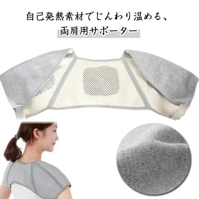 | 自己発熱素材でじんわり温める、両肩用サポーター 肩まわりをやさしく包み込み、冷えや肩こり、肩の痛みを軽減。 自己発熱素材で自然に温まり、四十肩・五十肩対策や首まわりの保温にもぴったり。軽量で柔軟性・伸縮性も抜群、長時間の着用でも負担にならず、蒸れにくく通気性も◎。 男女兼用デザインで、男性も女性も快適に使用可能。 おうち時間やオフィス、就寝時にもおすすめの防寒サポートアイテムです。 | |