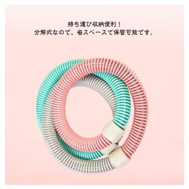 | ソフトフラフープ。低騒音設計!静音スプリング構造により、室内使用でも音が気になりにくい設計です。 しっかり加重!加重タイプで、通常のフラフープよりも効率よくカロリー消費と体幹トレーニングができます。 高弾力スプリング!内部には高弾性の合金スプリングを使用し、回転時の反発力が強化されています。 環境に優しい素材!外装は耐久性と安全性に優れたPVCプラスチックを使用しています。 持ち運び収納便利!分解式なので、省スペースで保管可能です。 | |