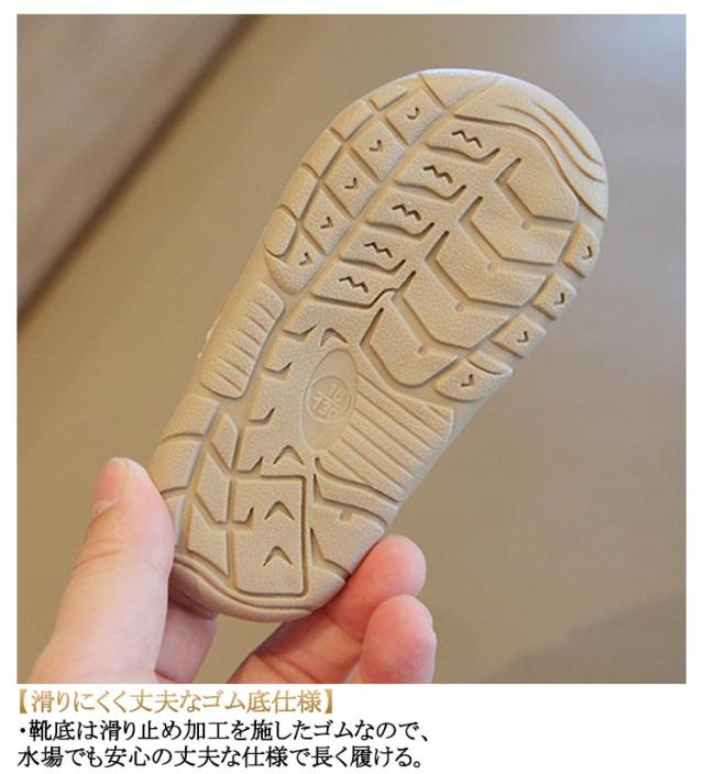 | 12cm〜16cmまで対応!安心のつま先ガード!初めてのサンダルにもぴったりな「水陸両用ベビーサンダル」 【小さな足に優しい☆つま先ガード】 ・グイっとつま先までせり上がるソールが、つま先を優しく保護。小さな足に優しい安心の仕様。 【嬉しい水陸両用☆水遊びで活躍】 ・ビーチやプール、川遊びやじゃぶじゃぶ池など、幅広い水遊びシーンで使える、水陸両用タイプ。 【サンダルデビューにぴったり!】 ・初めてのサンダルにぴったりのサンダル靴タイプ。靴のような履き心地で違和感が少ない。 【滑りにくく丈夫なゴム底仕様】 ・靴底は滑り止め加工を施したゴムなので、水場でも安心の丈夫な仕様で長く履ける。 【ワンタッチ着脱でラクチン】 ・面ファスナーでペリっと簡単なワンタッチ着脱!アッパーとかかとの両方を調節できる◎ 【可愛いシンプルさで使いやすい】 ・マリンタイムもデイリー使いもしやすい、シンプルデザイン。お洋服にも合わせやすい◎ | |