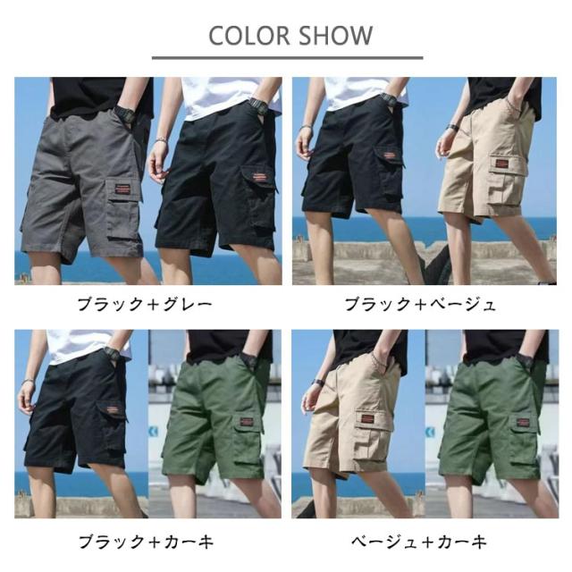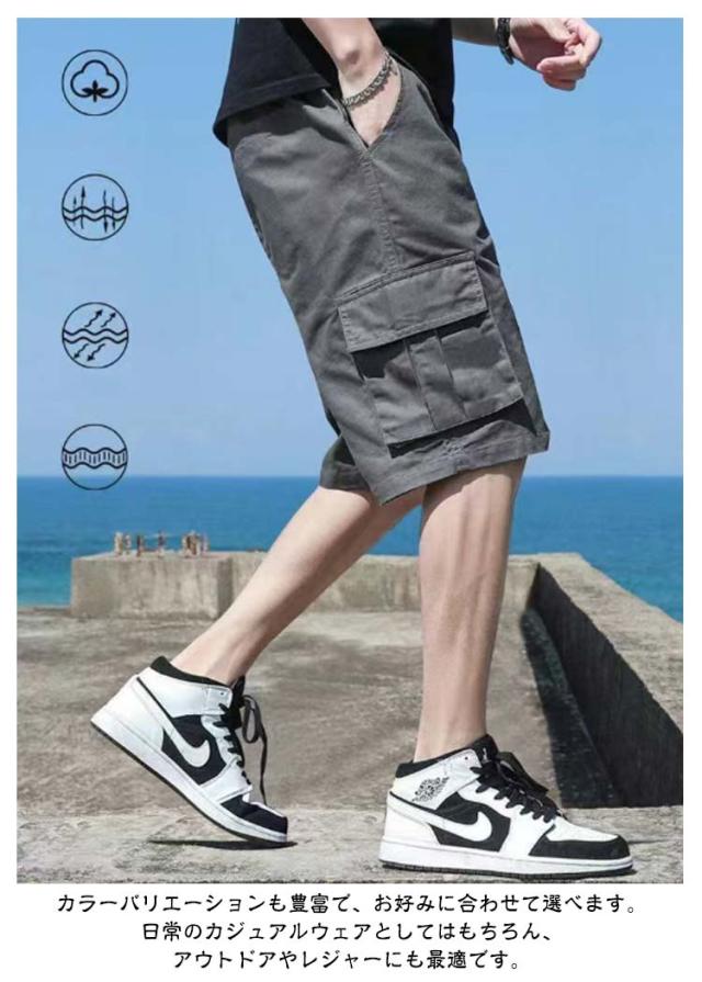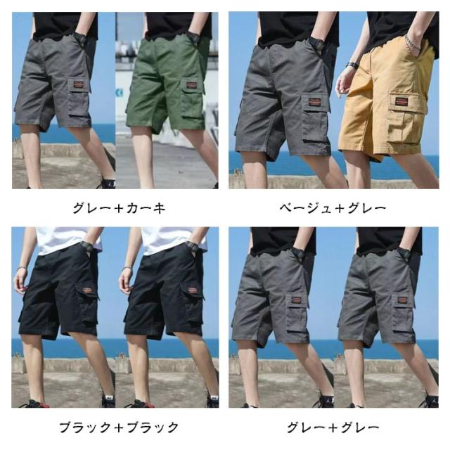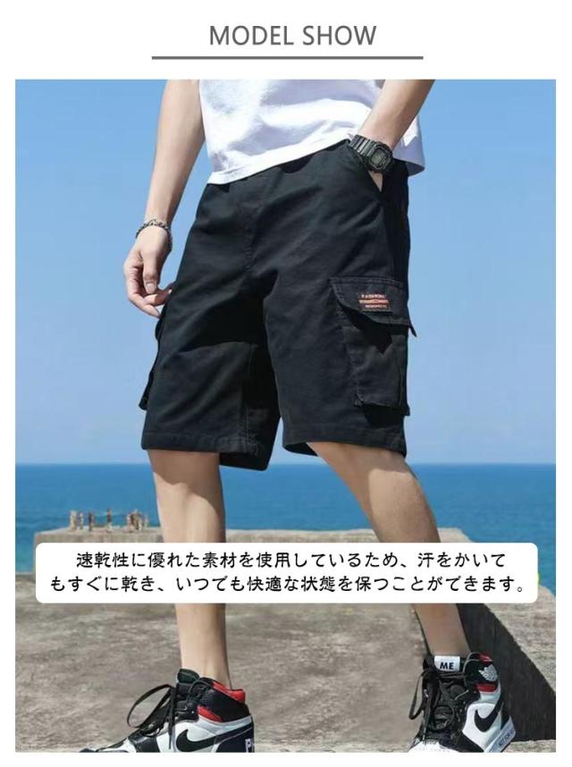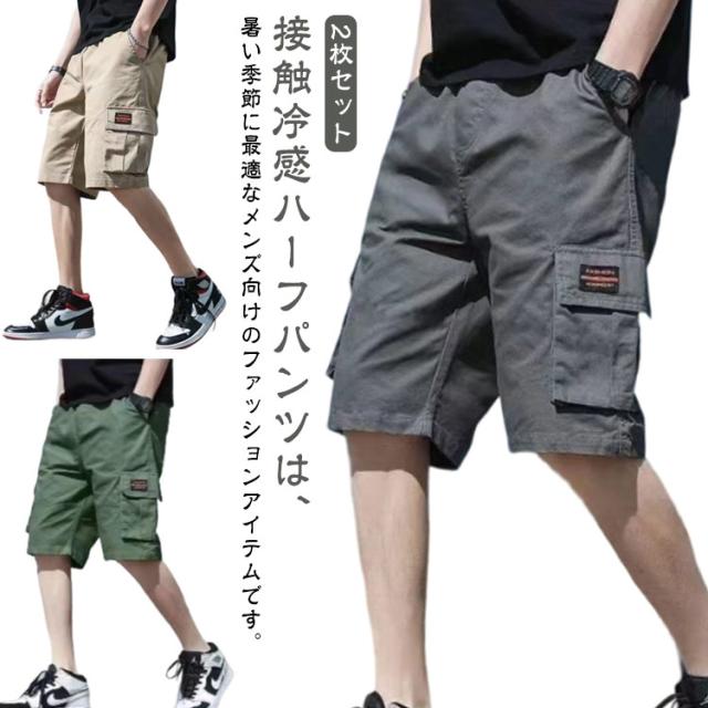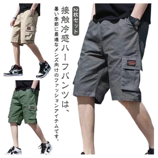 カーゴパンツ イージーパンツ ショーパン ハーフパンツ 接触冷感 パンツ 吸水速乾 ストレッチ メンズ ひざ丈 薄手 ショートパンツ 2枚セット 冷感 ポケット付き ワーク 2枚セット 短パン 春夏 短パン 夏 涼しい UVカット ズボン アウトドア 大きいサイズ カジュアル