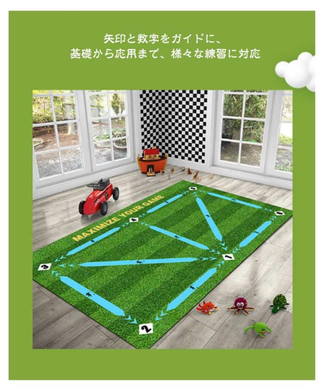 | 自宅でスキルアップ!サッカー練習用マット。 このサッカー練習用マットがあれば、いつでも、どこでも、 自分だけの特訓場に早変わり! 雨の日も、夜でも、自宅で快適に練習できるから、天候や時間に左右されずに スキルアップを目指せます。 矢印と数字をガイドに、基礎から応用まで、様々な練習に対応 自宅練習で差をつける!場所を選ばず、いつでもどこでもトレーニング可能!騒音防止効果で、マンションでも安心! 俊敏性を向上!矢印に沿ってボールを動かすことで、ボールコントロール力UP!パターンを変えて、様々な練習に対応! 90×60cmで、子供から大人まで使用可能!リビングでも使いやすいサイズ! お手入れ簡単!汚れに強い素材で、お手入れも簡単!丸洗いも可能! くるっと丸めてコンパクトに収納! | |