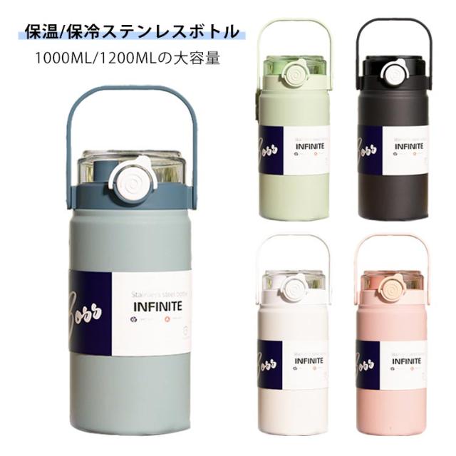 1000ml ステンレスボトル 真空断熱 1200ml 大容量 マグボトル スポーツボトル 直飲み 魔法瓶 保冷 保温 キッズ 水筒 水筒 1.2リットル 広口 ハンドル付き スポーツジャグ 軽量 こども 1リットル 大人 氷入れ アウトドア 運動 旅行