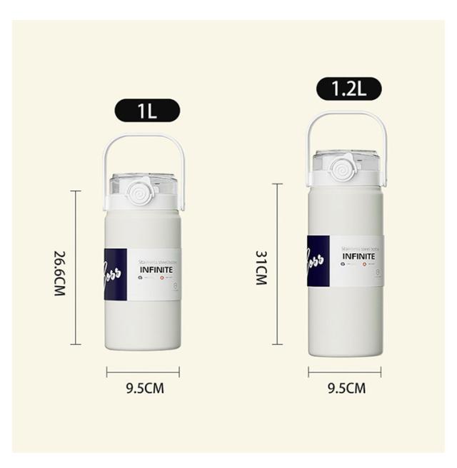| 保温/保冷ステンレスボトル 1000ml/1200mlの大容量 ステンレス真空二重構造で保冷・保温力がUP!飲み物の温度を長時間キープ。 広口タイプだから氷もラクラク入れられます。 持ち手は付きので、カラビナやフックにかけて持ち運んだり、吊り下げ用途にも。 サイクリング、ハイキング、キャンプ、ランニング、旅行、登山などのアウトドア活動に使用できます。 このマグカップは、自宅、フィットネス、オフィス、学校などの日常生活でも使用できます。 お友達へのプレゼントとしてもご利用いただけます。 | |