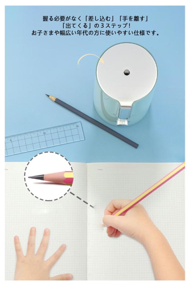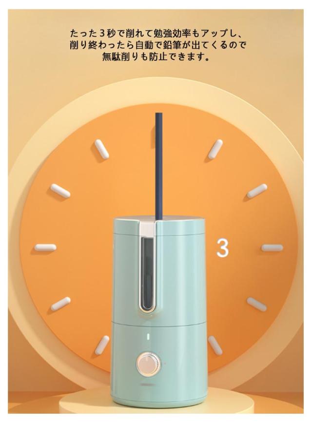 | 安全!速い!安定! 3秒で鉛筆削り! 手で握る必要がない! 全自動充電式鉛筆削り 太さ5段階調整 【商品説明】 ・完全自動!差し込むだけで削れる全自動鉛筆削りです。 ・握る必要がなく「差し込む」「手を離す」「出てくる」の3ステップ!お子さまや幅広い年代の方に使いやすい仕様です。 ・たった3秒で削れて勉強効率もアップし、削り終わったら自動で鉛筆が出てくるので無駄削りも防止できます。 ・USB充電式で、一度充電すればコードレスでリビングや好きな場所で使用いただけます。 ・芯の太さは5段階調整が可能です。三角形や円形、色鉛筆など市販の鉛筆全般に対応しており、鉛筆勉強や作画など幅広い用途にお使いいただけます。 ・カッター部分は合金スパイラル刃を使用しています。耐久性に優れており、パワフルかつ滑らかな削り心地が長続きします。 ・誤動作防止ロック、オーバーヒート防止など安全機能を搭載しており、お子さまの1人仕様も安心です。 ・可視のペン削りくず入れ:透明デザインで削りカスの量が一目瞭然、 溢れを防ぎます。ゴミ捨ての回数を大幅に減らせてラクラク。 ・自動芯抜き機能:折れ芯自動排出されるので、もっと安心。 ・カラーはパステルカラーからカラーまで、全5色展開です。 | |