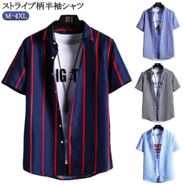 羽織り 半袖シャツ 半袖シャツ カジュアルシャツ 男性 ストライプ柄 開襟シャツ カジュアル 大きいサイズ 夏 メンズ メンズシャツ 半袖シャツ ストライプ柄 カジュアルシャツ
