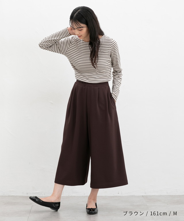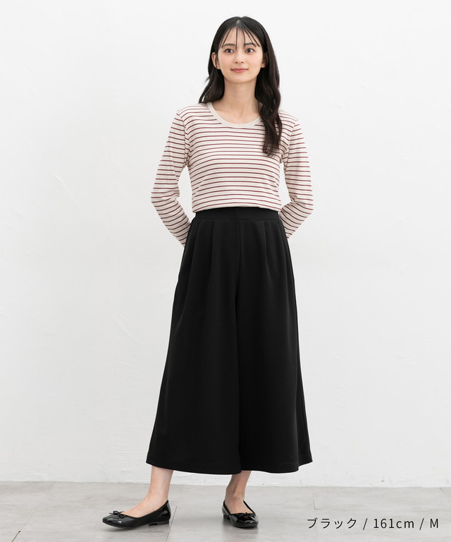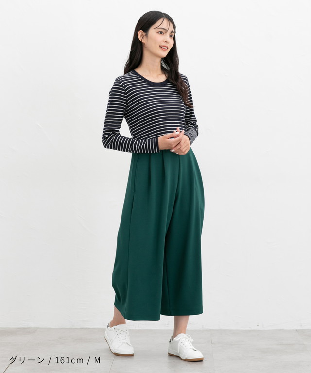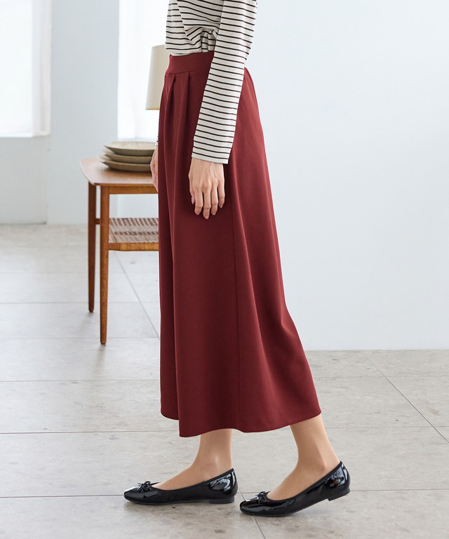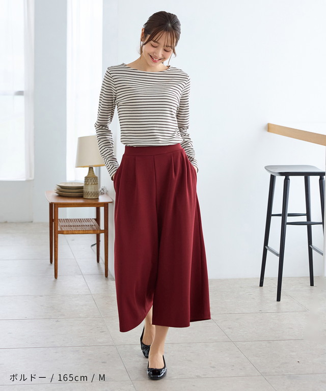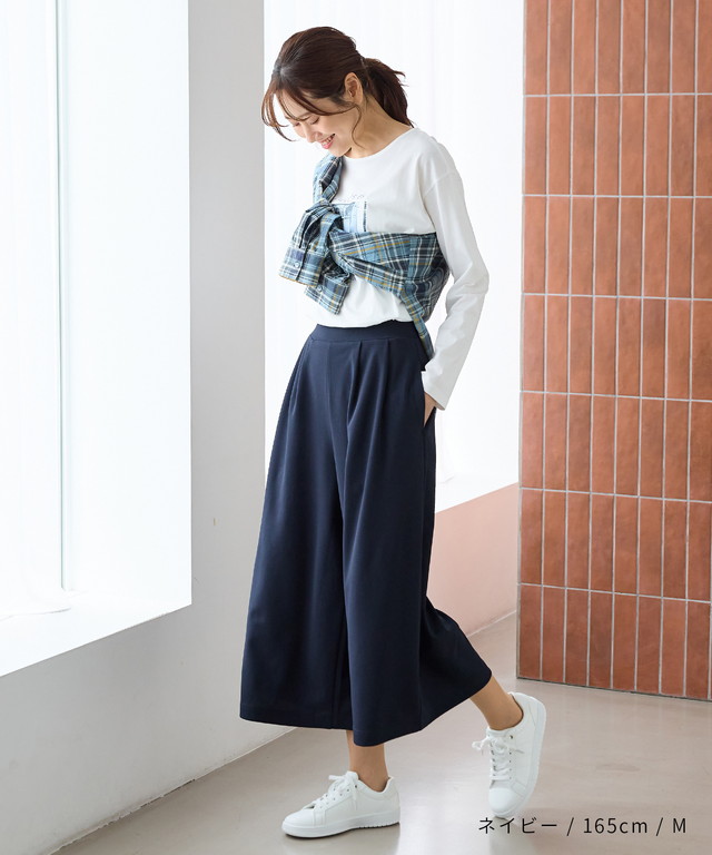 スカート見えするワイドシルエットが大人可愛いデザイン。