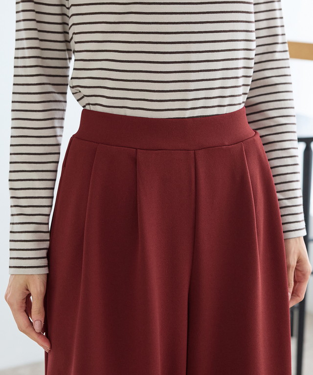 ストレッチ生地とウエストゴムでストレスフリーなはき心地。