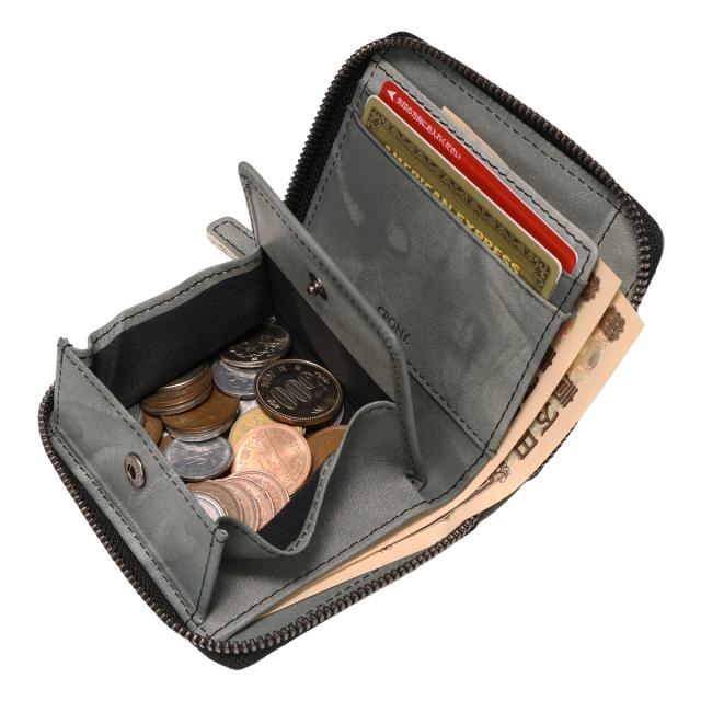 【レビュー投稿で+5%還元】クルニー 二つ折り財布 財布 二つ折り ラウンドファスナー 札入れ ミニ財布 コンパクト メンズ 日本製 CRSH-03 SESSHU CRONY. 雪舟 ムラ染め 牛革 本革 レザー