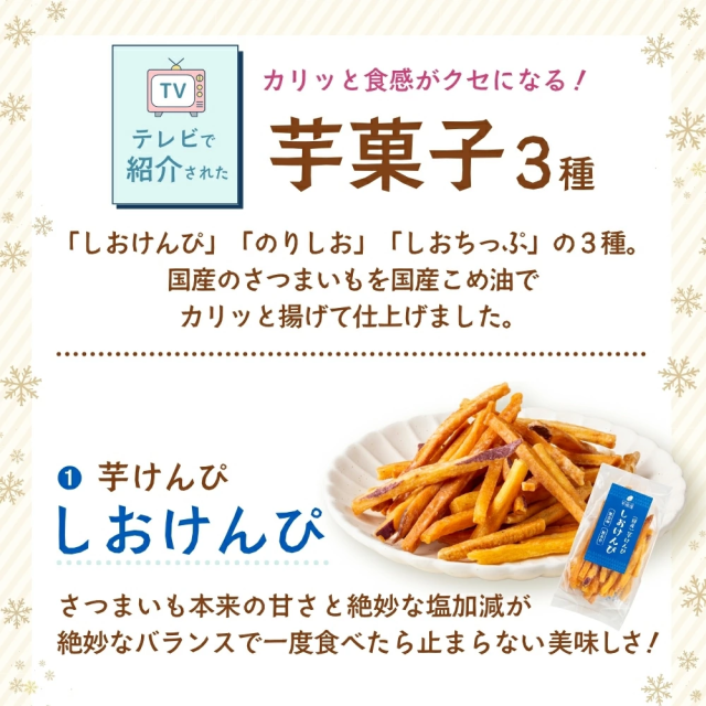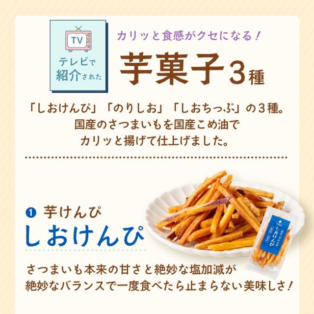 - 芋けんび、芋チップス、干し芋等色々入った芋菓子セットです、美味しい芋菓子です。