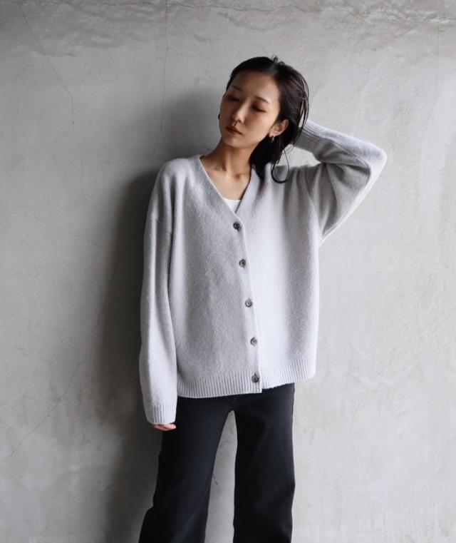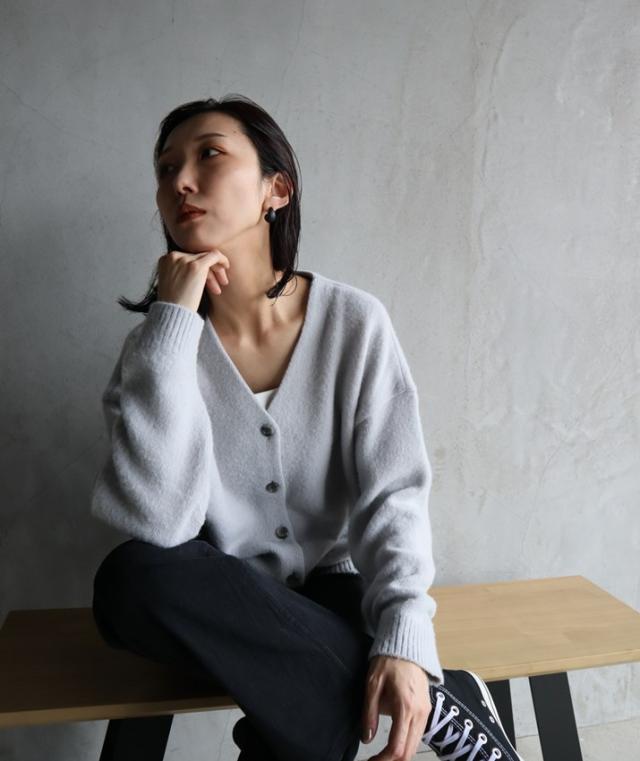 シンプルながらも存在感があり、スタイリングの主役として楽しめるカーディガンです。