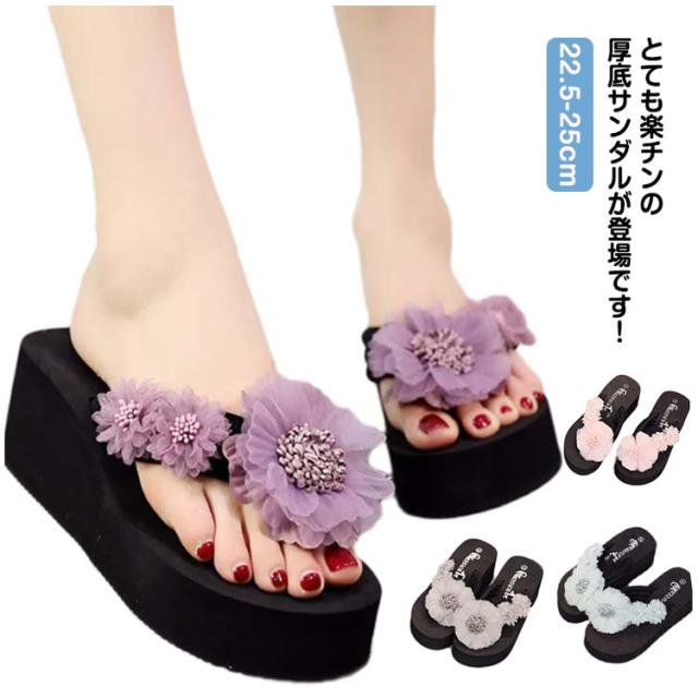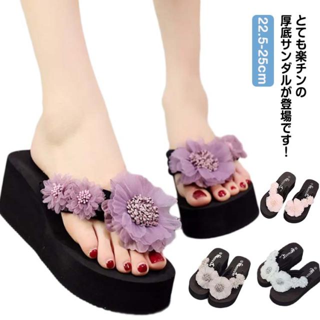 ビーチサンダル 厚底 ミュール ミュール レディース サンダル 軽い 美脚サンダル ミュールサンダル 靴 厚底サンダル フラワーデザイン 可愛い 花柄 コンフォート 軽量 リゾート 旅行 浴衣 シューズ 旅行 かわいい プレゼント ギフト 送料無料