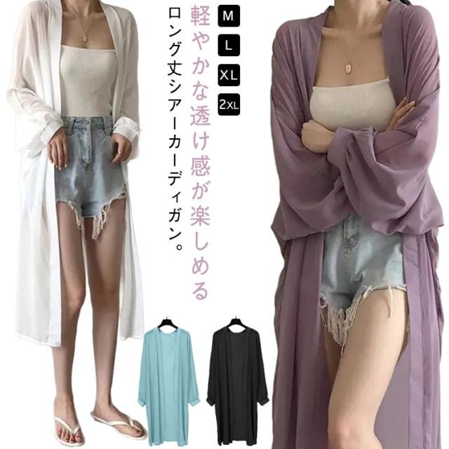 シアーカーディガン シアートッパー ロング シアー カーディガン 羽織り シースルー ロングカーディガン 透け感 ドルマンスリーブ 長袖 ボリューム袖 冷房対策 紫外線対策 UV対策 ロングカーディガン 送料無料