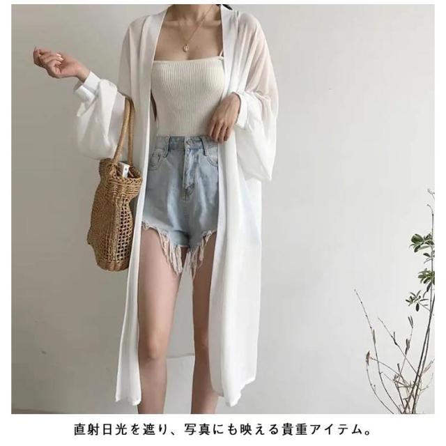 | 軽やかな透け感が楽しめるロング丈シアーカーディガン。 透け感のあるシフォン素材が涼しさを感じさせ、フェミニンで可愛い。 Tシャツやタンクトップ、キャミソールと合わせてレイヤードスタイルを楽しんでいただけます。 ふんわり広がる袖にカフスを付けた形がポイント。 直射日光を遮り、写真にも映える貴重アイテム。 | |