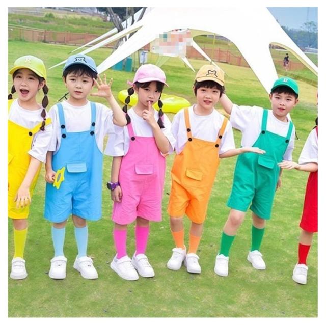 キッズ 応援団 女の子 男の子 ダンス衣装 サロペットパンツ サロペット 韓国子供服 カラーパンツ カラフル 幼稚園 卒業写真撮影 発表会 卒園式 オーバーオール 夏服 ショートパンツ 短パン 演出服 春夏 韓国子供服 無地 保育園 送料無料