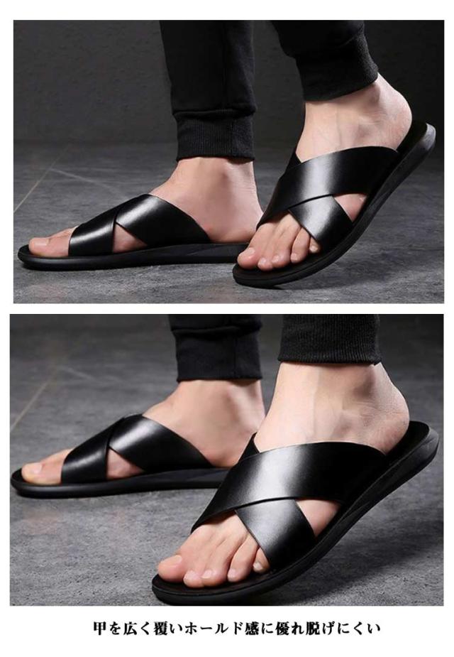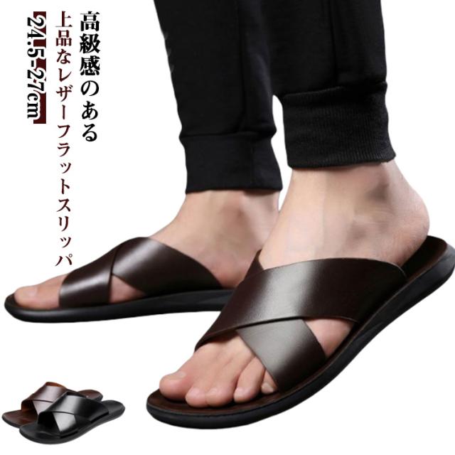 スリッパ サンダル メンズ コンフォートサンダル フラットスリッパ 夏用 おしゃれ 外履き 大きいサイズ 蒸れない 靴 革 PUレザー シューズ 歩きやすい シャワーサンダル ビーチサンダル メンズファッション アウトドア 軽量 海 夏 送料無料