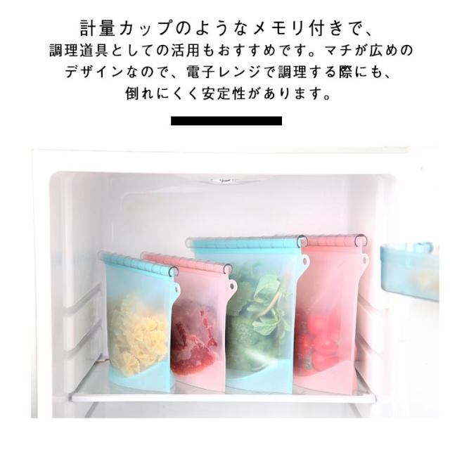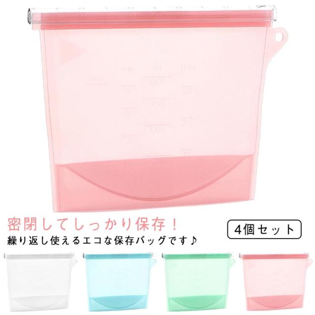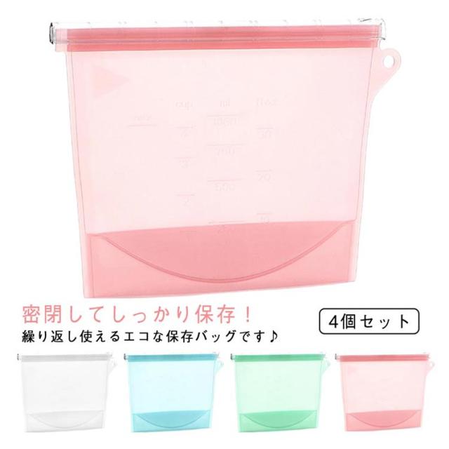 4個セット 食品保存バッグ 食品収納袋 密閉バッグ 食品貯蔵 シリコンバッグ エコ 半透明 立てて保存可能 冷凍対応 しっかり密封 再利用可能 鮮度長持ち キッチン用品 耐熱 耐冷 お手入れ簡単 家庭用 送料無料