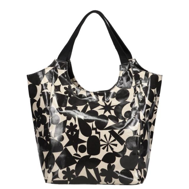 ラミネート加工で汚れ難く拭き取りが容易です。容量たっぷりながら型崩れ少なく自立もする優秀トートです。