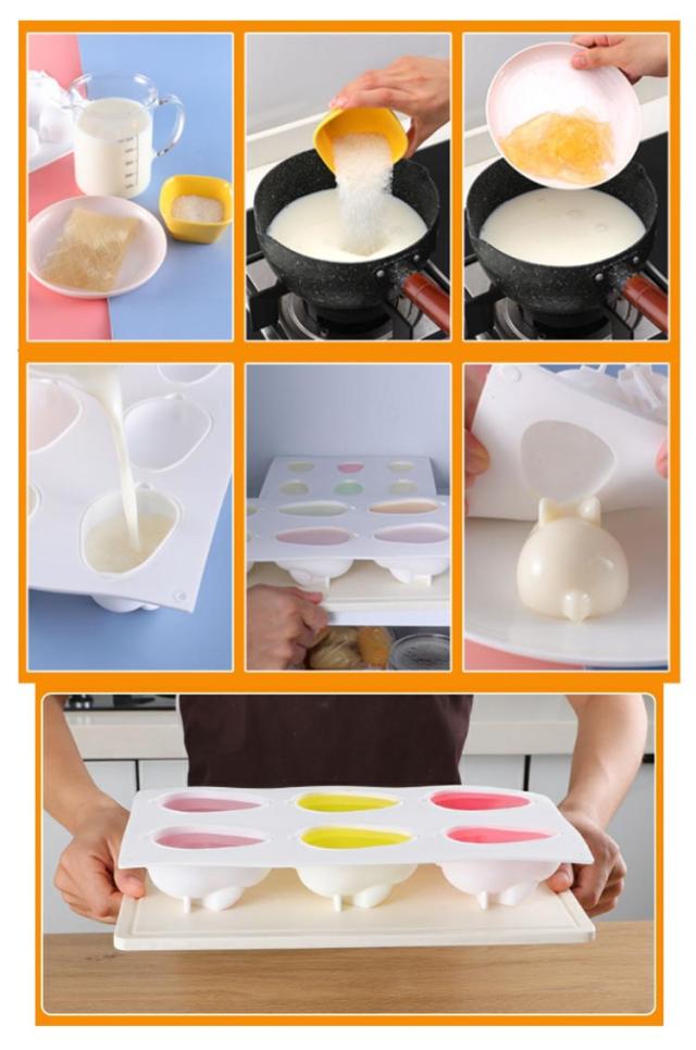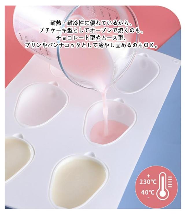 | シリコン型 6連タイプ 肉球/ウサギ S/M/L 【2点セット】 剥がしやすく、洗いやすいシリコン型です。 DIY、チョコレート、焼き菓子、石鹸、キャンドル、粘土 等なんでも活用いただけます。 立体的な6つの可愛らしいうさぎを作成することができます。子供の大好きなうさぎの型でご家庭でお菓子をつくるのに活用していてください。 耐熱・耐冷性に優れているから、プチケーキ型としてオーブンで焼くのも、チョコレート型やムース型、プリンやパンナコッタとして冷やし固めるのもOK。 氷やシャーベット、アイスクリームの型として冷凍庫にいれてもOKです。 ほかにもハンドメイドのクラフトレジンやろうそく型などいろんな使い方ができるから、イメージがどんどん膨らむおしゃれで可愛く映えるシリコン型です♪ | |
