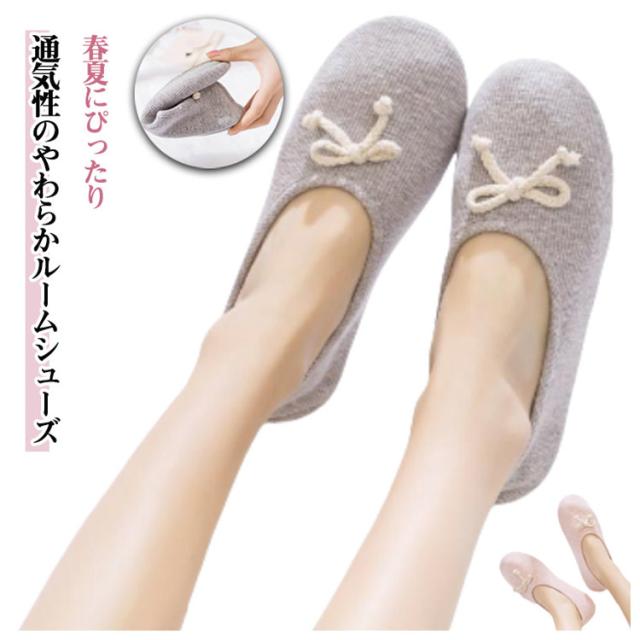 ルームシューズ レディース 春夏 室内履き フラットシューズ 妊婦さん用 リボンスリッパ 静音 室内用 包み込むスリッパ 通気性 シンプルスリッパ 無地 ピンク グレー ギフト 快適スリッパ 滑り止め付き 柔らかい