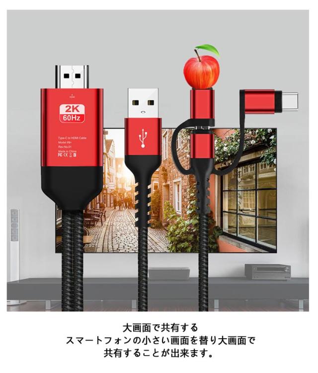 | 3in1:iPhone/Android/Type-C HDMI変換ケーブル スマートフォンの画面をHDMI端子のついたテレビ モニタなどの大画面に表示できるMHL to HDMI変換アダプタ! 【特徴】 スマートフォンの画面をHDMI端子付きのテレビやディスプレイに出力できる! TVから離れて操作できるケーブル長! 【使い方】簡単3ステップ! 1)スマホのMicroUSBポートに接続 2)テレビやモニターのHDMIに接続 3)充電用USBをACアダプタに接続 対応機種iOS15/iOS14/IOS13/iOS11に対応だけなく 、Samsung Galaxy、Huawei EMUI対応可能です。 1本3プラグ自由切替 テレビ大画面でスマホの写真や動画を楽しもう! iPhone/Andoid/Type-Cスマルて対応 ●1080PHD高画質 鮮明で綺麗な大画面を楽しめる映画やドラマなどをデレビに投影してハイ映像の盛宴を体験します。 ●大画面で共有する スマートフォンの小さい画面を替り大画面で共有することが出来ます。 ●鮮明で綺麗な大画面を楽しめる iphone、Andiro、Type-cをHDMIインターフェース搭載のディスレイなどに移して、長時間安定した動作、大画面でこ家族やお友達と楽しめます。 ●自宅でゲームを楽しめる! HDMI変換アダプタを使えば、最大1080PのHD画質でミラーリングできます。同時に映像と音声を伝送するより良いゲーラム体験です。 | |