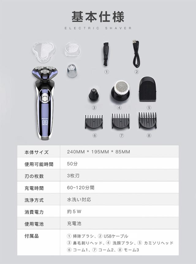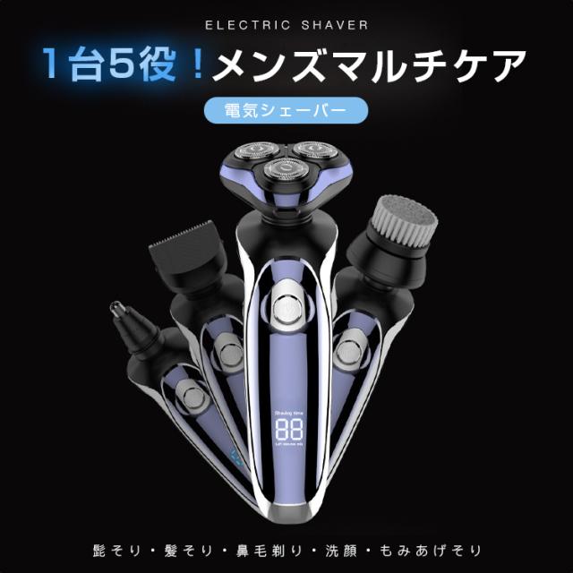 メンズシェーバー 髭剃り 電気シェーバー ボディシェーバー 髭そり 髪そり 鼻毛剃り 洗顔 もみあげそり 父の日 ギフト 多機能セット IPX7防水 1台5役
