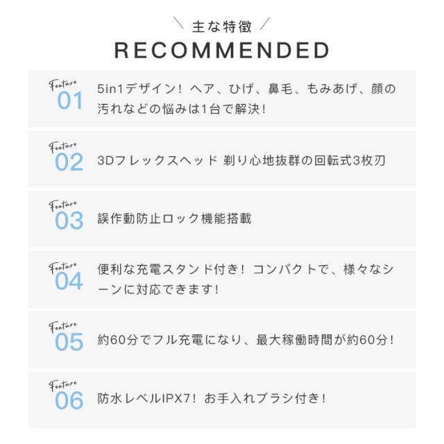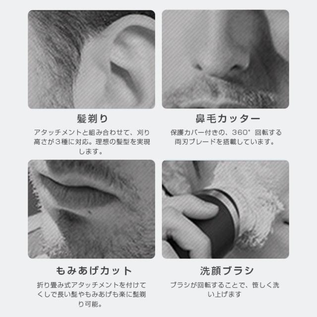 ・5in1デザイン!ヘア、ひげ、鼻毛、もみあげ、顔の汚れなどの悩みは1台で解決!
